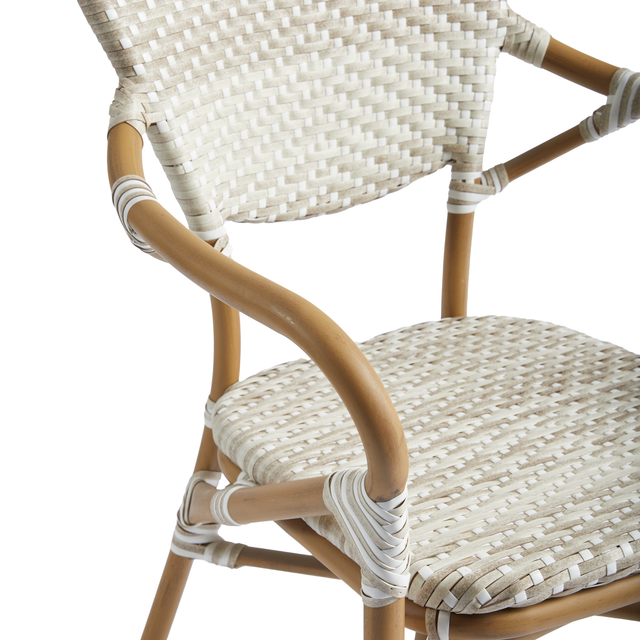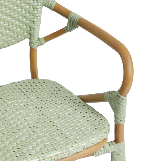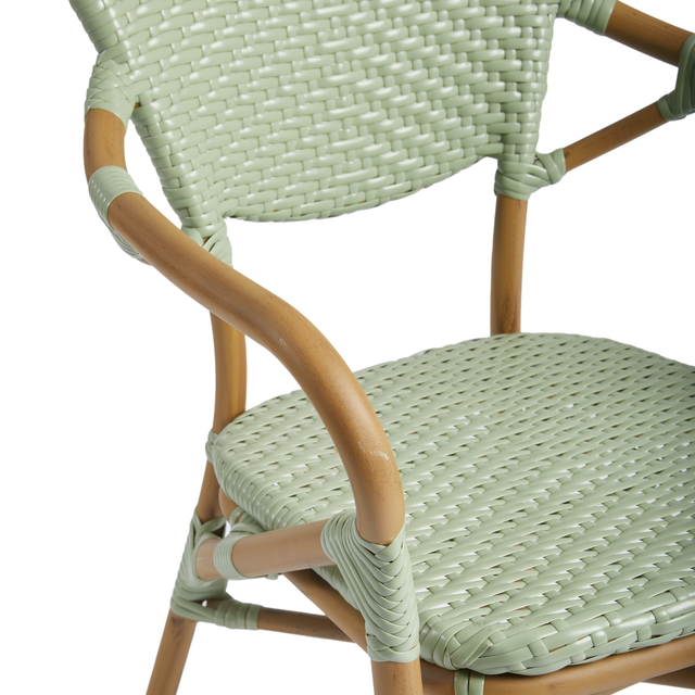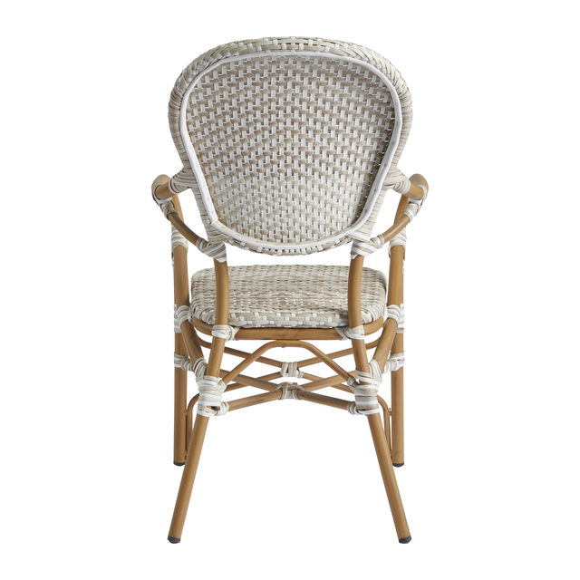 The Brittany Arm Chair features a seat and backrest manufactured from high-quality synthetic wicker which pairs perfectly with the durable aluminium bamboo effect frame. The Arm Chair is stackable, so it is great for venues that struggle with space. It is low maintenance so it can be easily used indoors or outdoors.