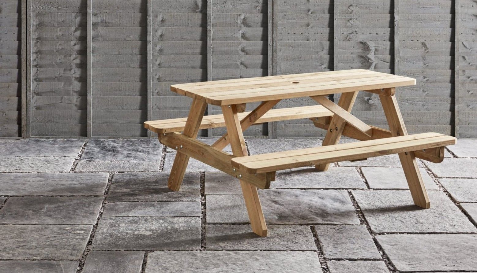 This very sturdy picnic table is made from high pressured treated spruce timber and is built to withstand years of use.