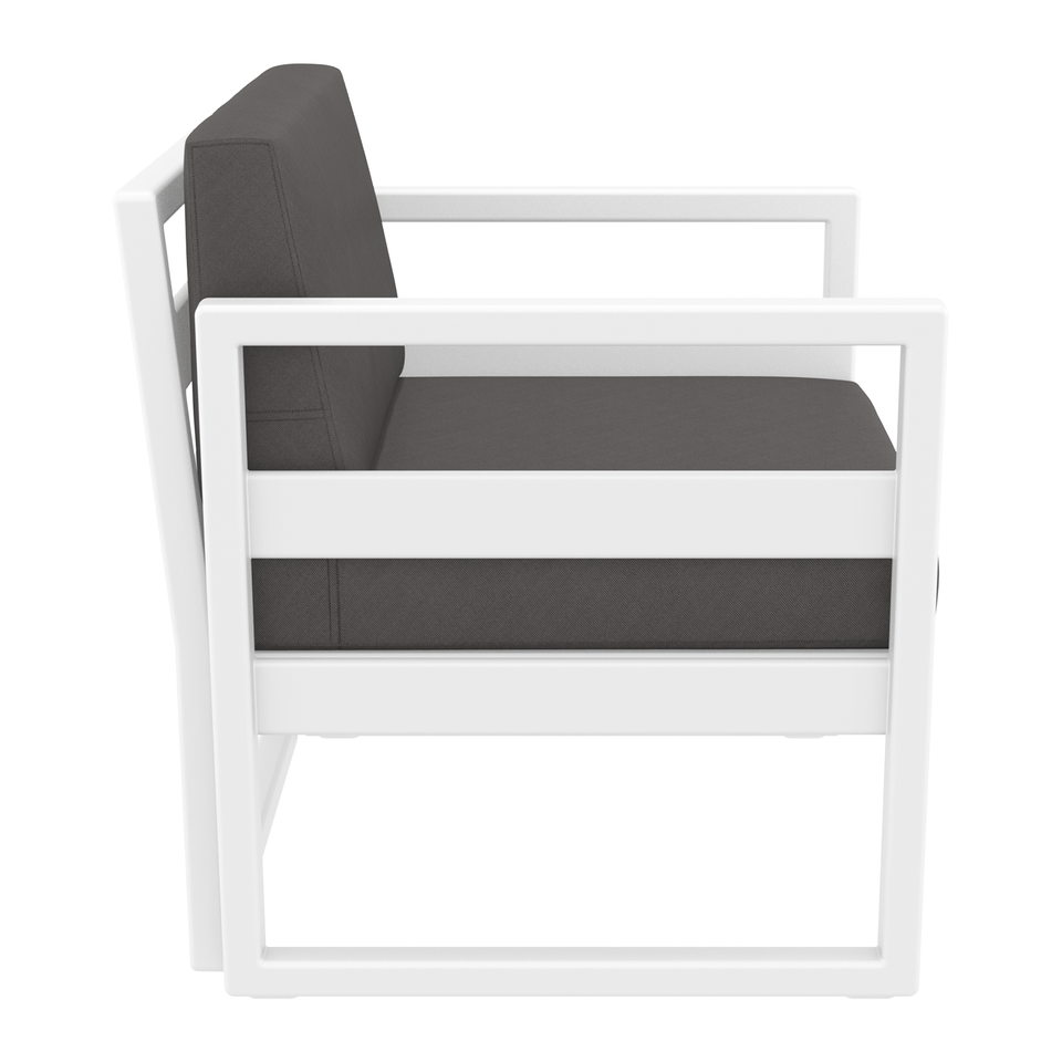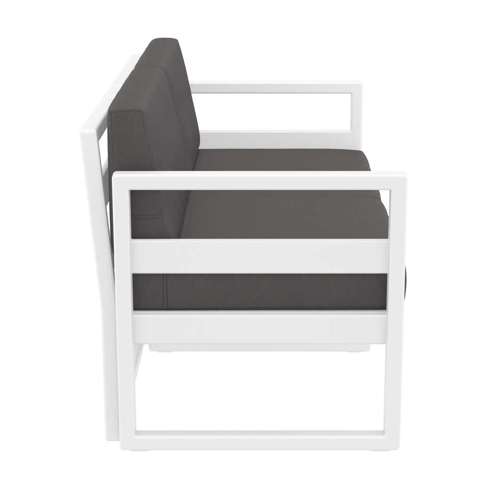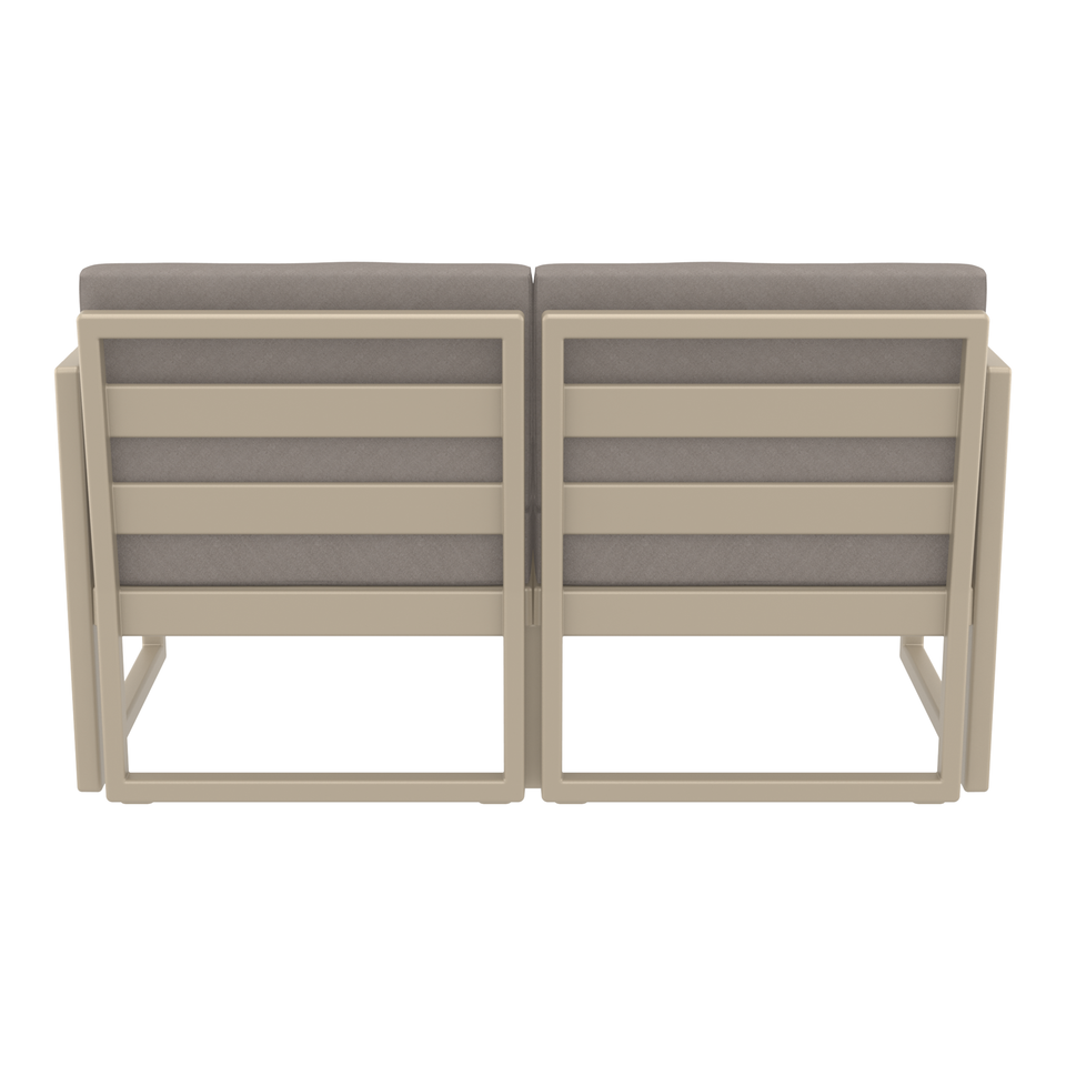 Designed for easy self assembly, it is made of durable weather-resistant resin reinforced with glass fibre. The non-metallic frame will never unravel, rust or decay and as it is UV protected the colours will not fade. The comfortable, outdoor cushions are 4.5 inches thick. Can be disassembled when not in use. For light commercial use only.