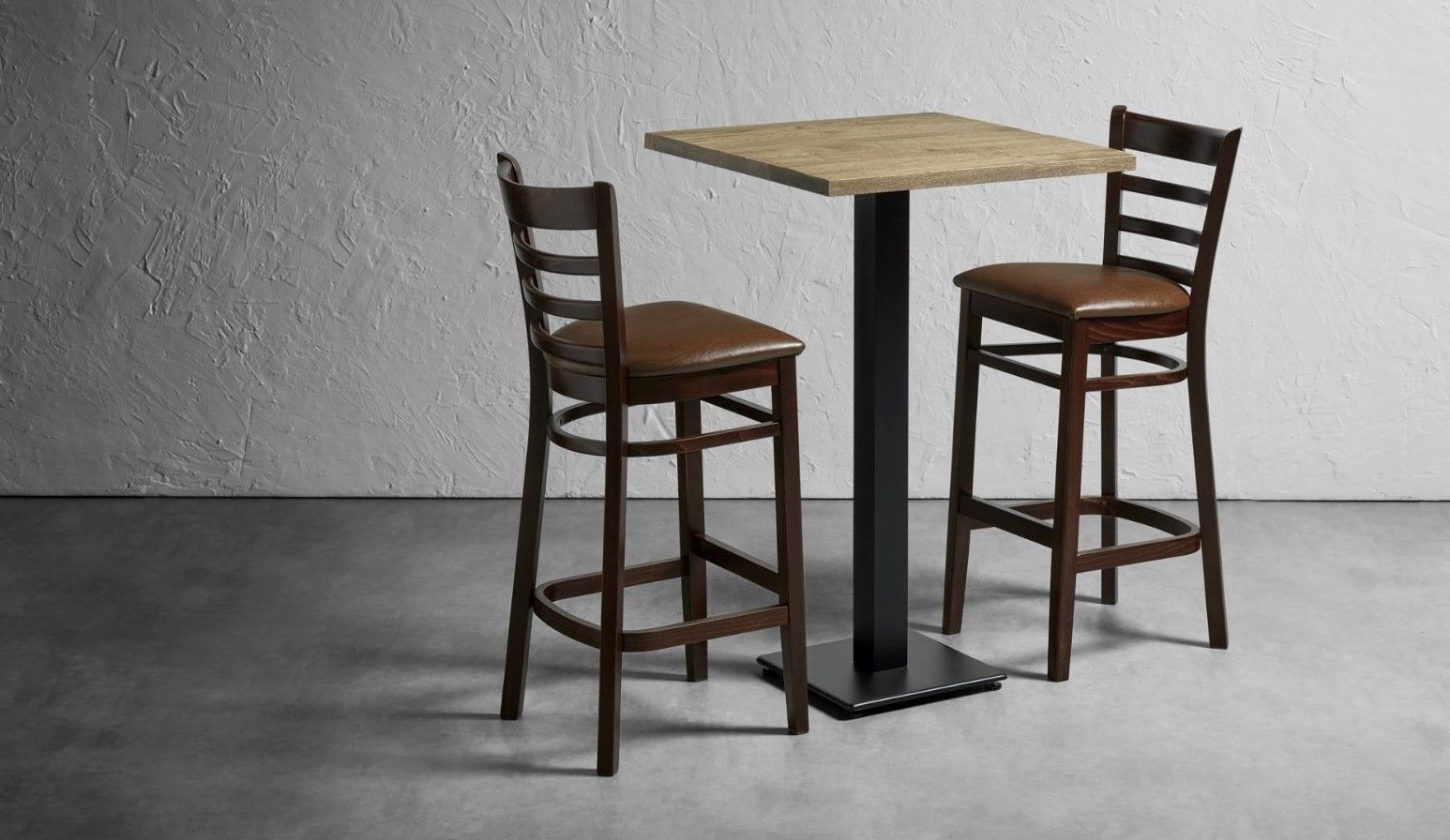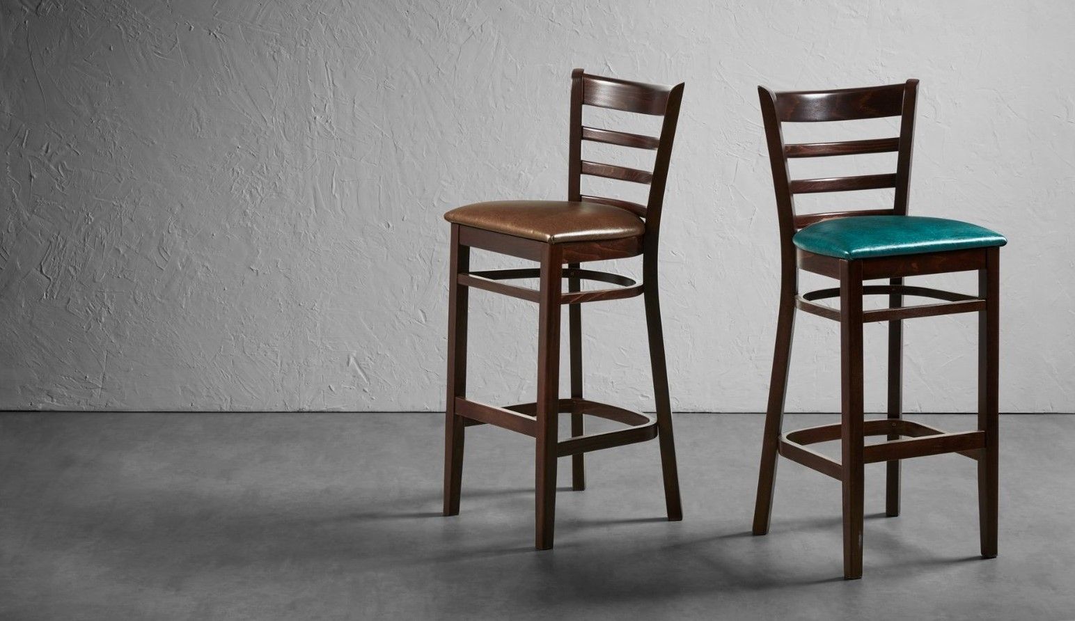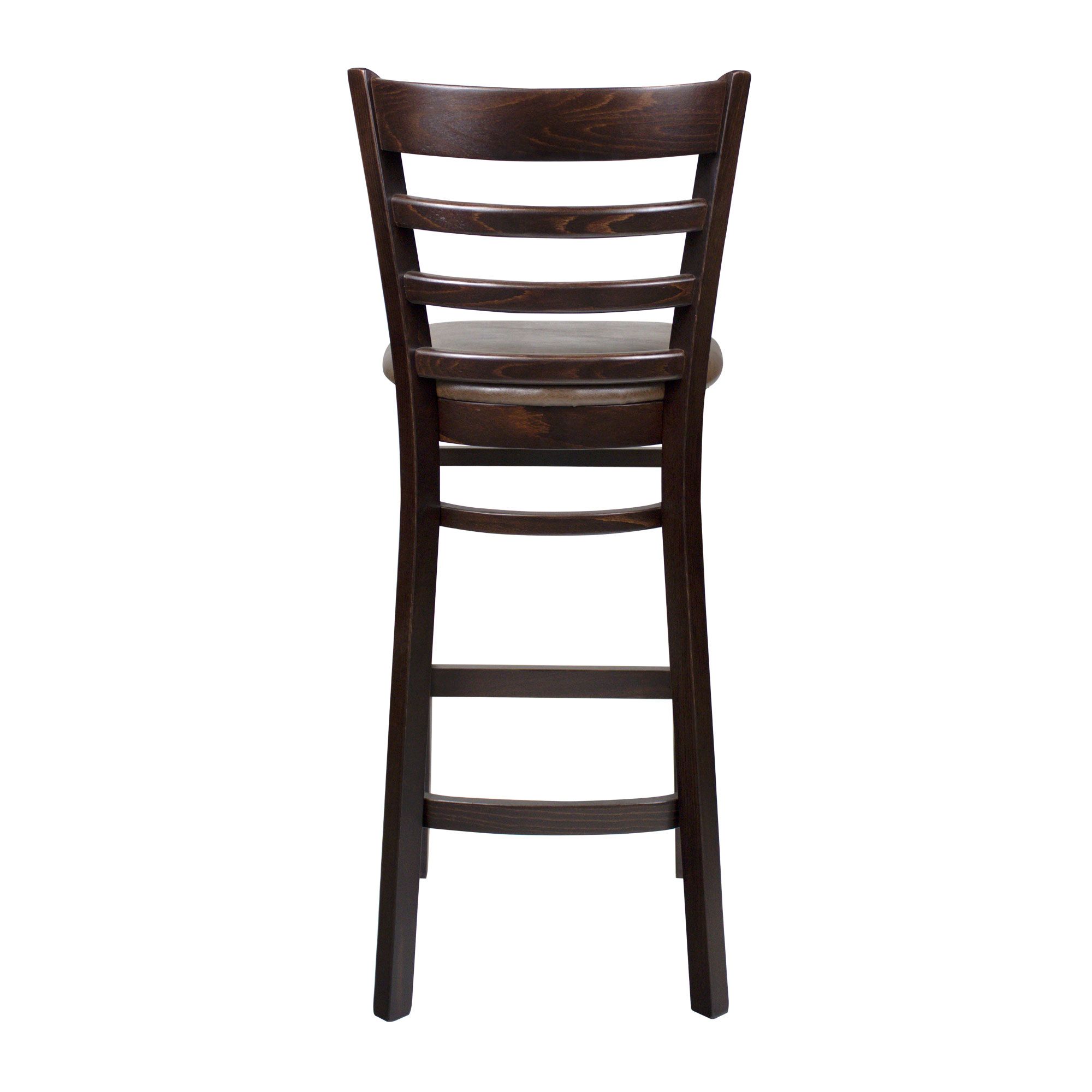 The SHELDON bar stool is a solid and classically designed stool that’s constructed from beech with a traditional rail back design. It’s comfortable, stylish, and extremely versatile. The soft seat pad is upholstered in a choice of two vintage colours made from faux leather that perfectly complements the dark wood frame. Ideally suited to indoor hospitality venues including hotels, bars, cafés and restaurants.