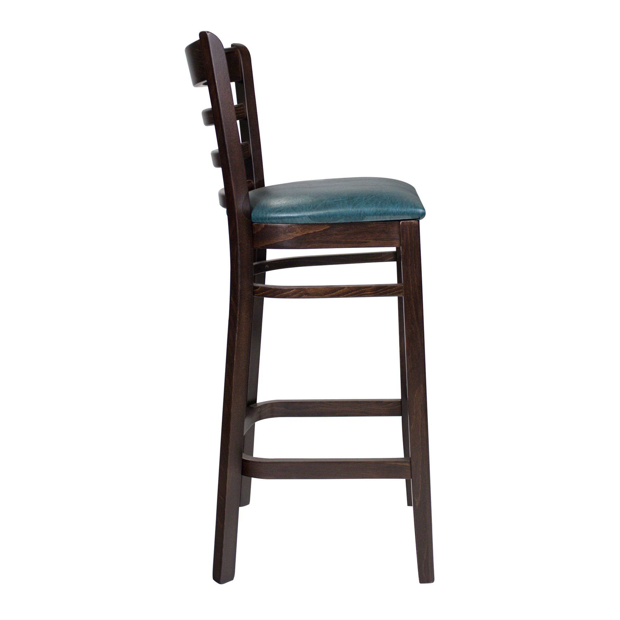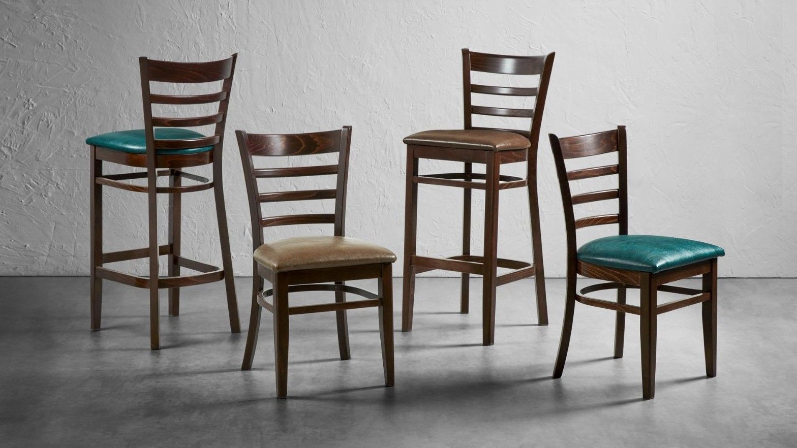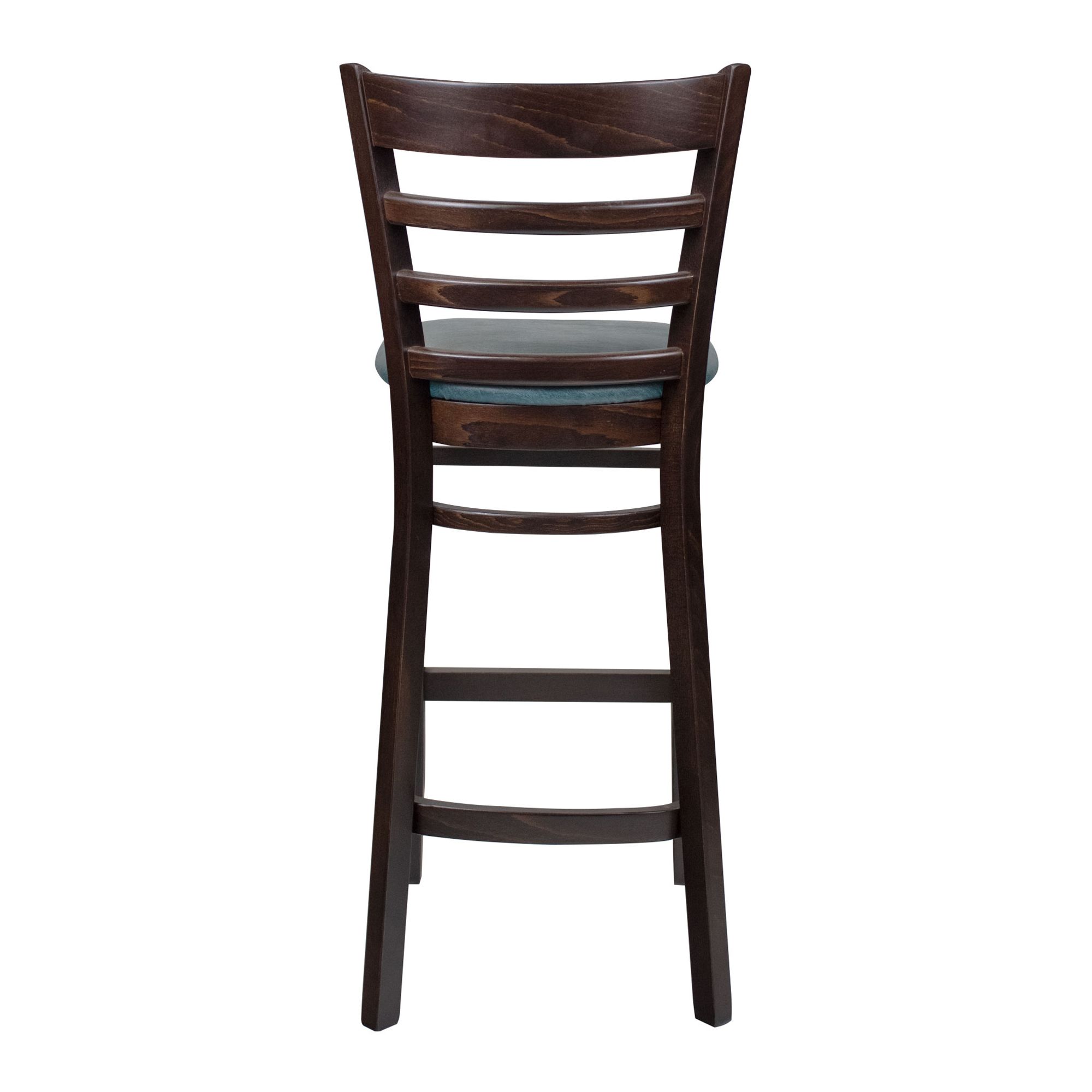 The SHELDON bar stool is a solid and classically designed stool that’s constructed from beech with a traditional rail back design. It’s comfortable, stylish, and extremely versatile. The soft seat pad is upholstered in a choice of two vintage colours made from faux leather that perfectly complements the dark wood frame. Ideally suited to indoor hospitality venues including hotels, bars, cafés and restaurants.