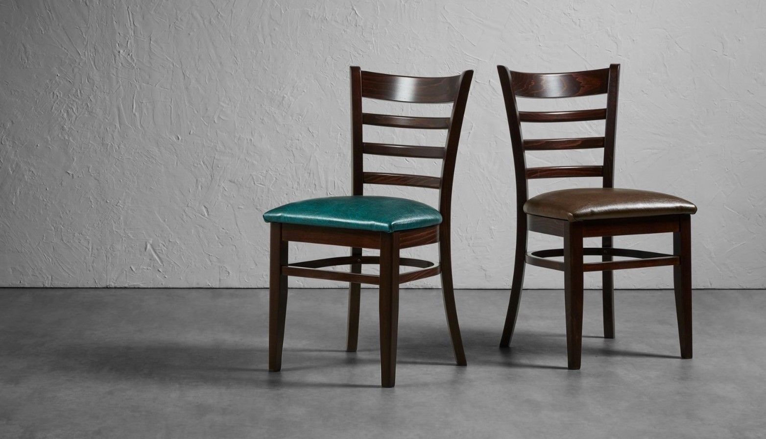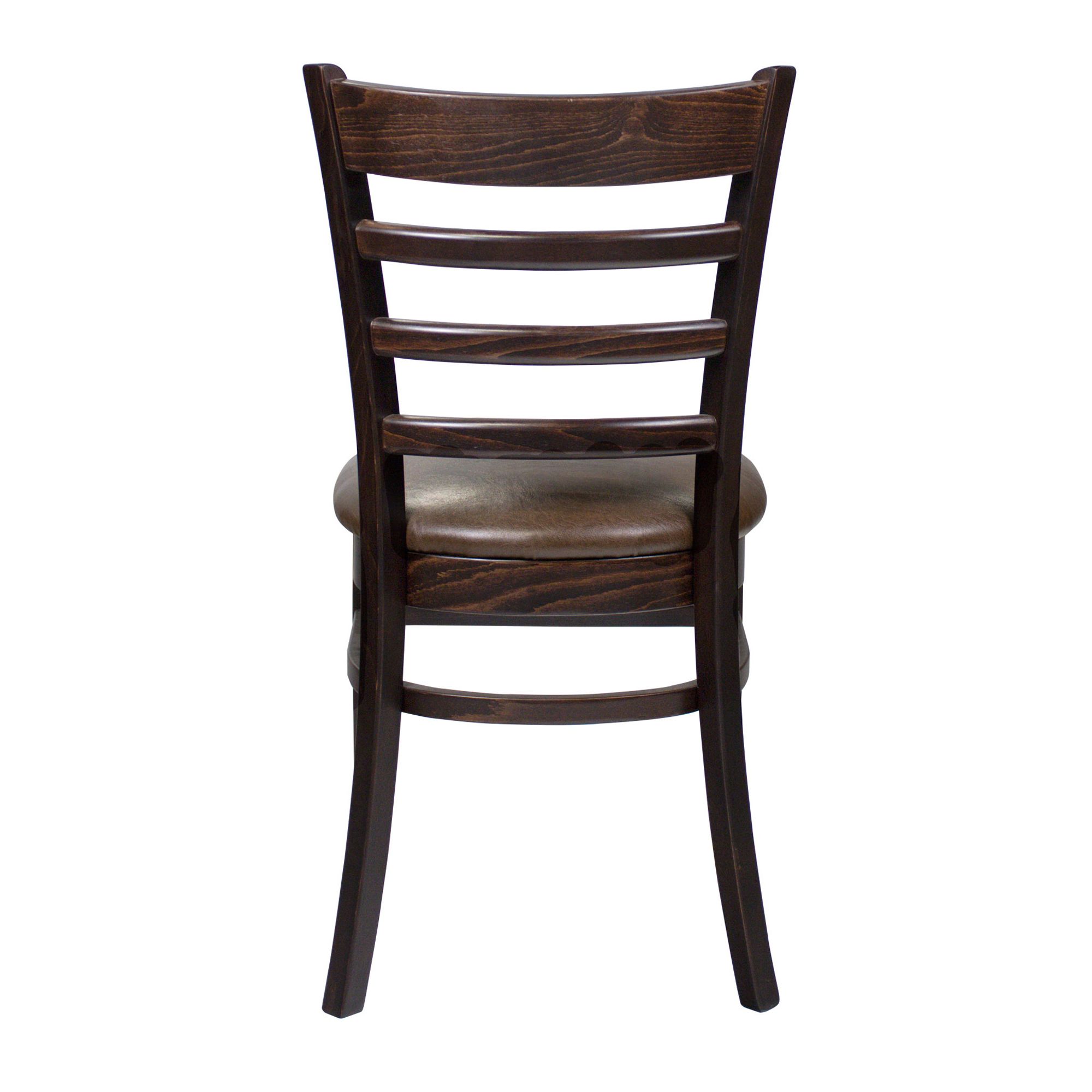 The SHELDON side chair is a solid and classically designed chair that’s constructed from beech with a traditional rail back design. It’s comfortable, stylish, and extremely versatile. The soft seat pad is upholstered in a choice of two vintage colours made from faux leather that perfectly complements the dark wood frame. Ideally suited to indoor hospitality venues including hotels, bars, cafés, and restaurants.